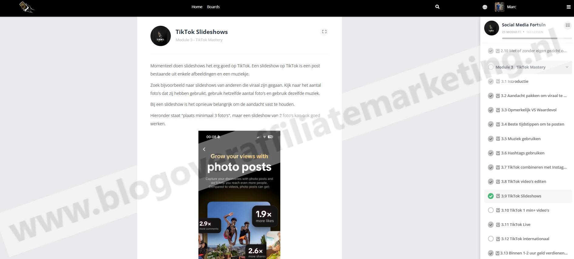 Social Media Fortuin biedt een schat aan kennis voor online succes. Je leert handige tips voor TikTok, Instagram en meer. Met de kortingscode MARC15 krijg je 15% extra korting op de cursus.