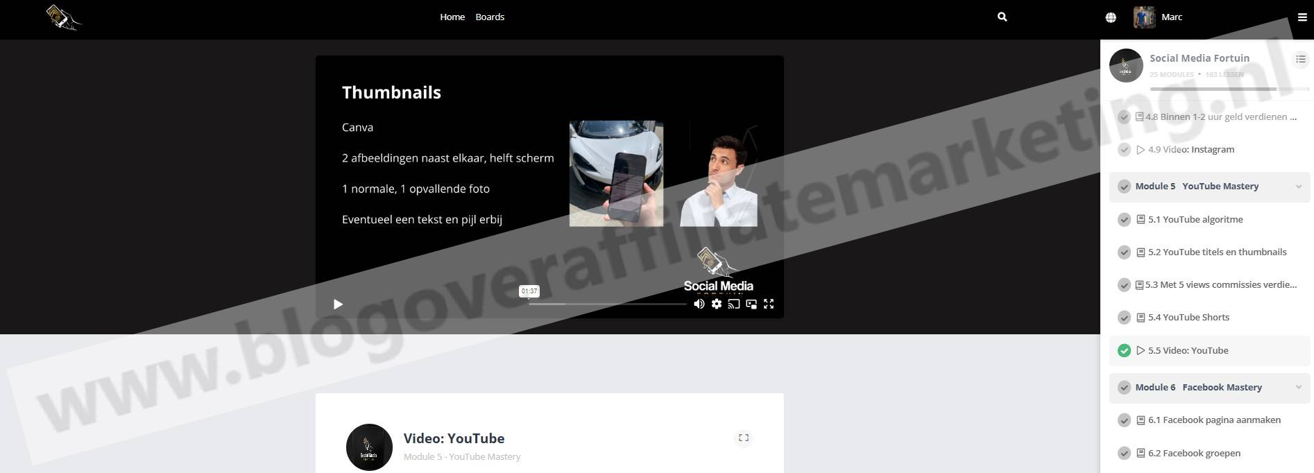 Op deze foto zie je de YouTube Mastery van de Social media Fortuin