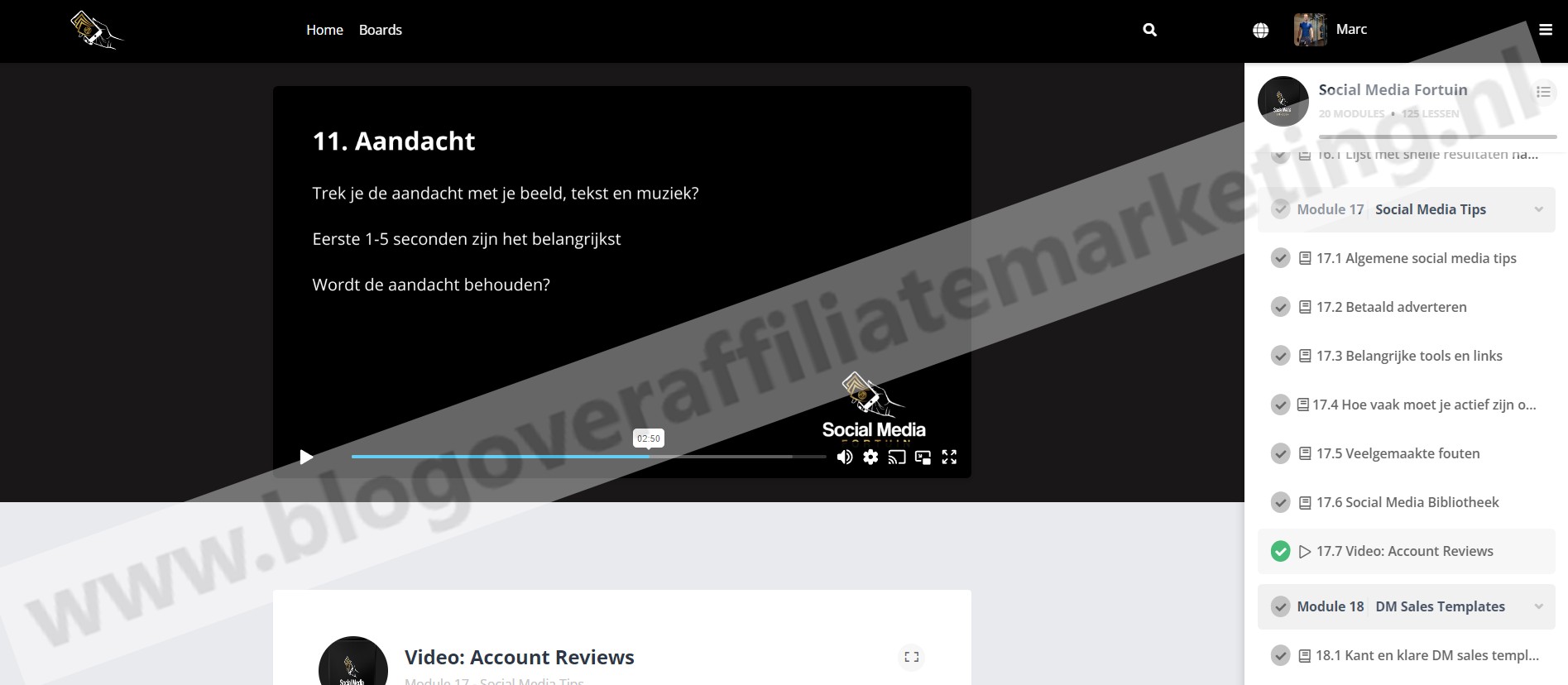 Na het overzicht gaan we dieper in op het doel van de cursus. Social Media Fortuin wil je helpen groeien op social media. Je leert hoe je meer volgers krijgt en geld verdient online. De cursus mikt op snelle resultaten.